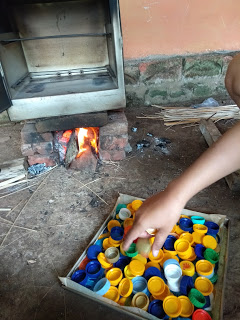 h. Setelah sudah digin dan sudah tercetak, lepaskan cetakan dan tutup botol yang sudah dilelehkan akan berbentuk kotak sesuai dengan cetakan.
