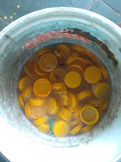 b. Cuci tutup botol menggunakan sabun sampai bersih.